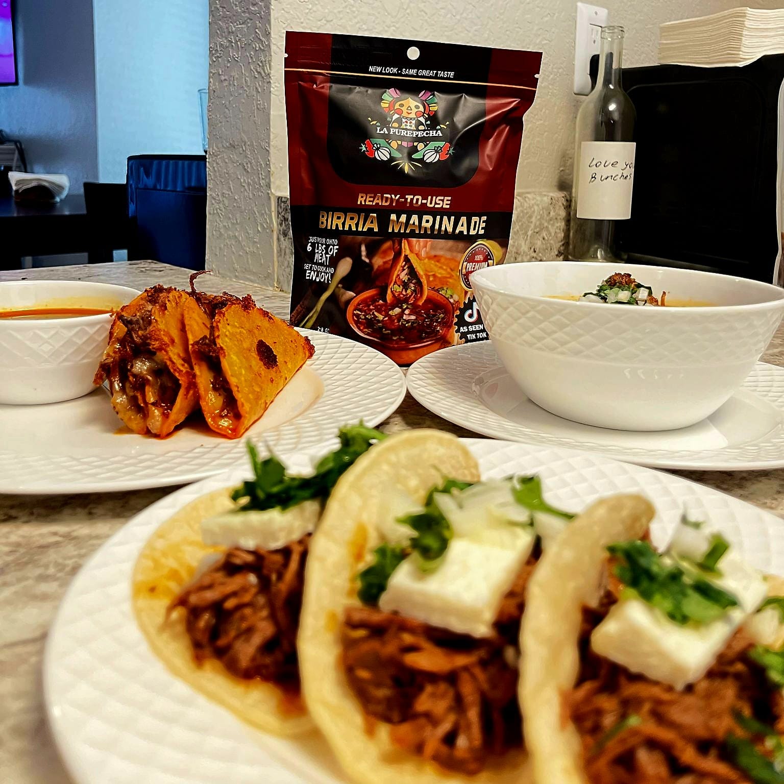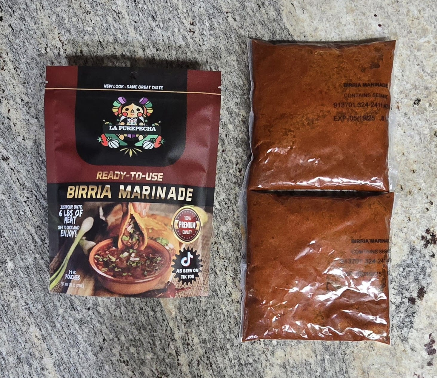 Single pack of Birria Marinade which includes 2 8 oz pouches, each perfect for 3 lbs of meat.